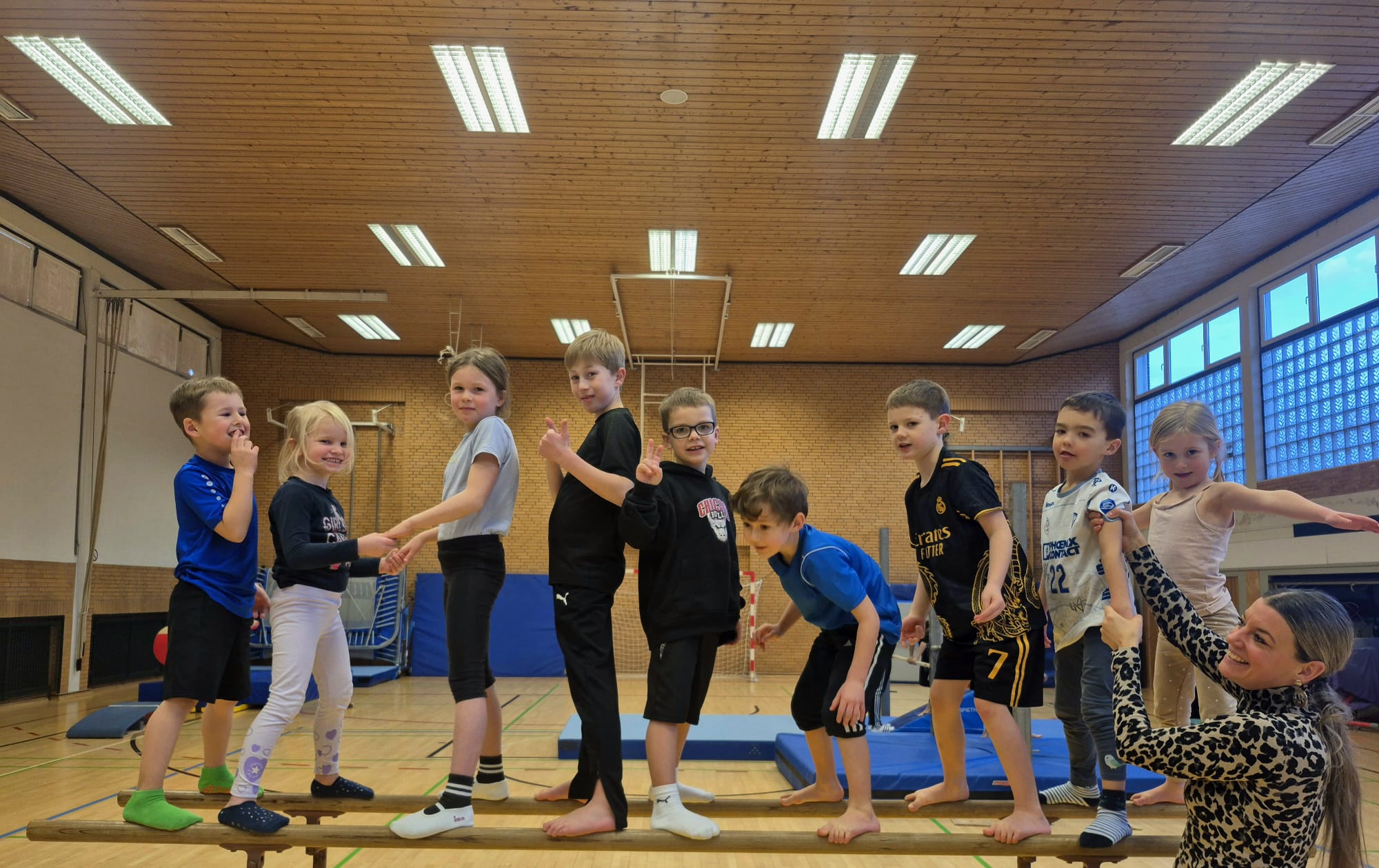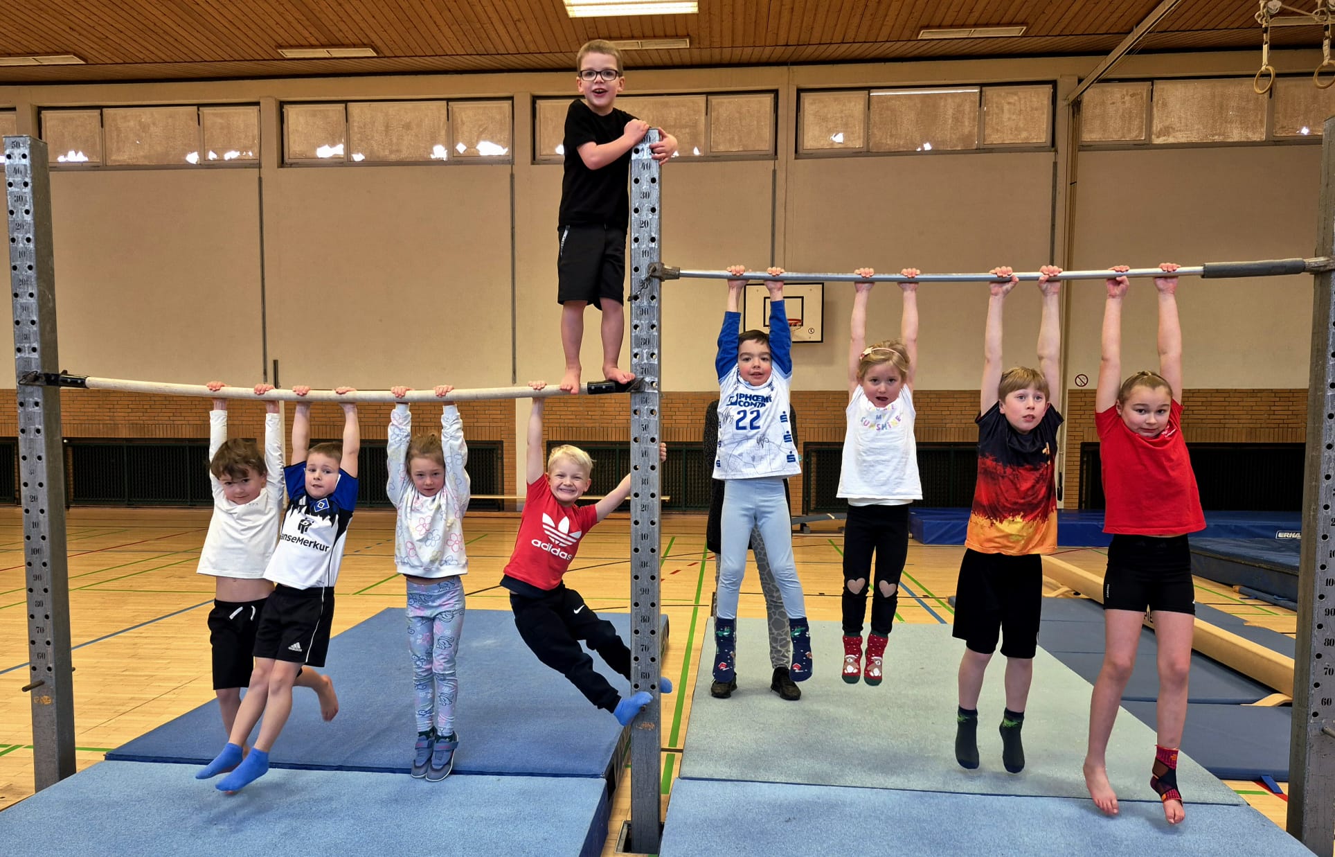 Jungen und Mädchen im Alter von 5 bis 10, die mit dem Turnen beginnen oder sich einfach gerne bewegen.